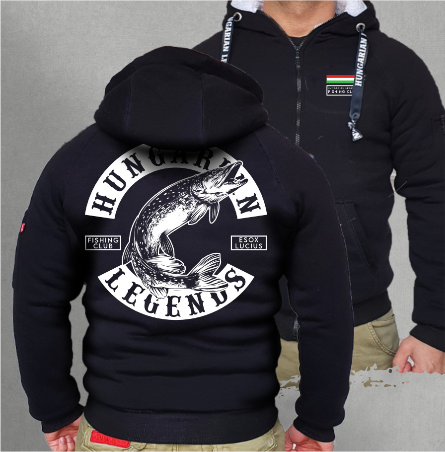 Hungarian Legends férfi kapucnis, cipzáras pulóver, Sherpa béléssel.