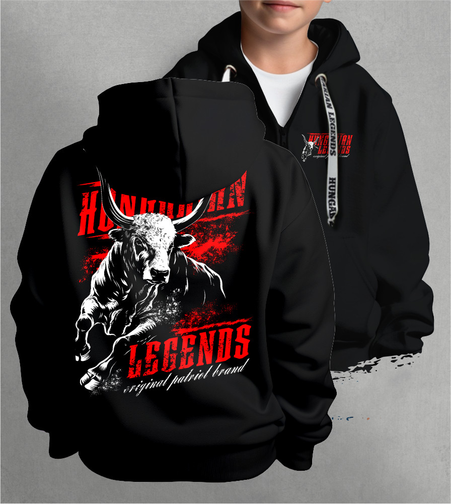 Hungarian Legends gyerek kapucnis, cipzáras pulóver.