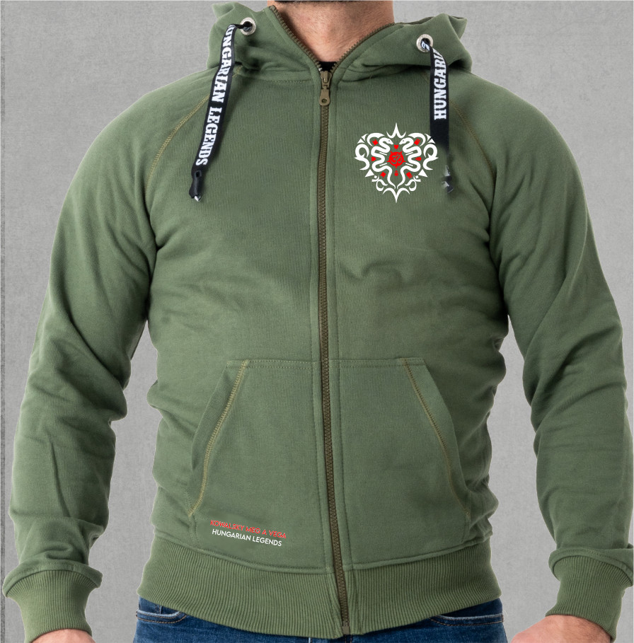 Hungarian Legends férfi kapucnis, cipzáras pulóver.