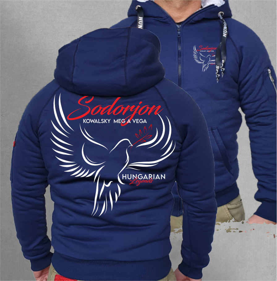 Hungarian Legends férfi kapucnis, cipzáras pulóver, Sherpa béléssel.